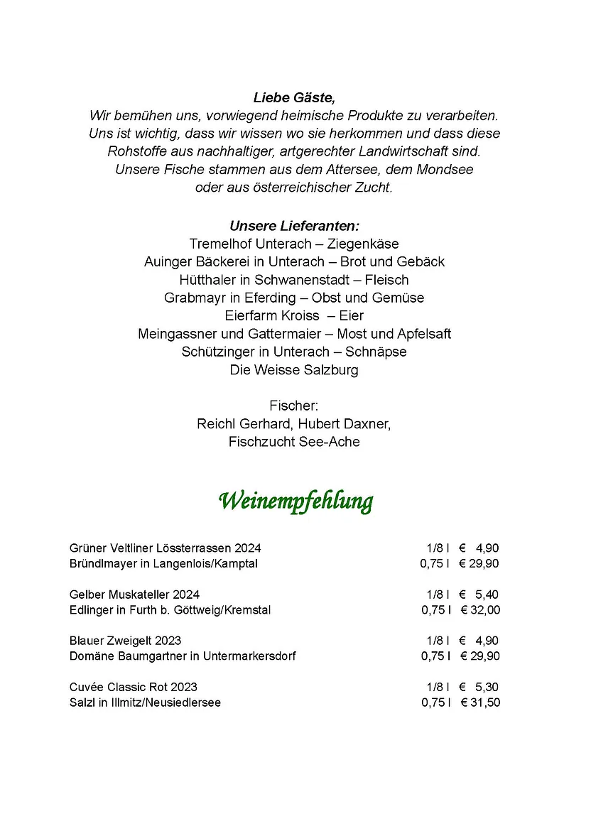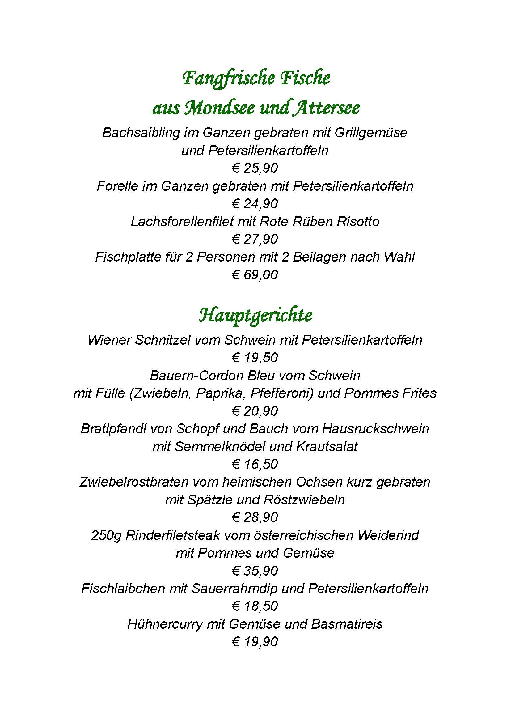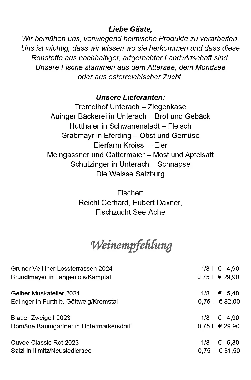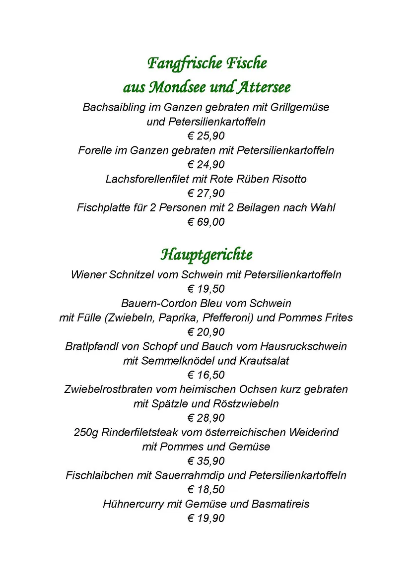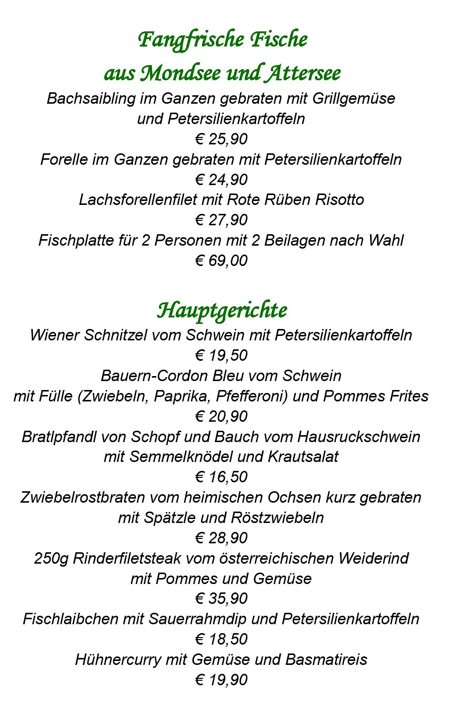 Unsere Speisekarte im Gasthof See am Attersee und Mondsee