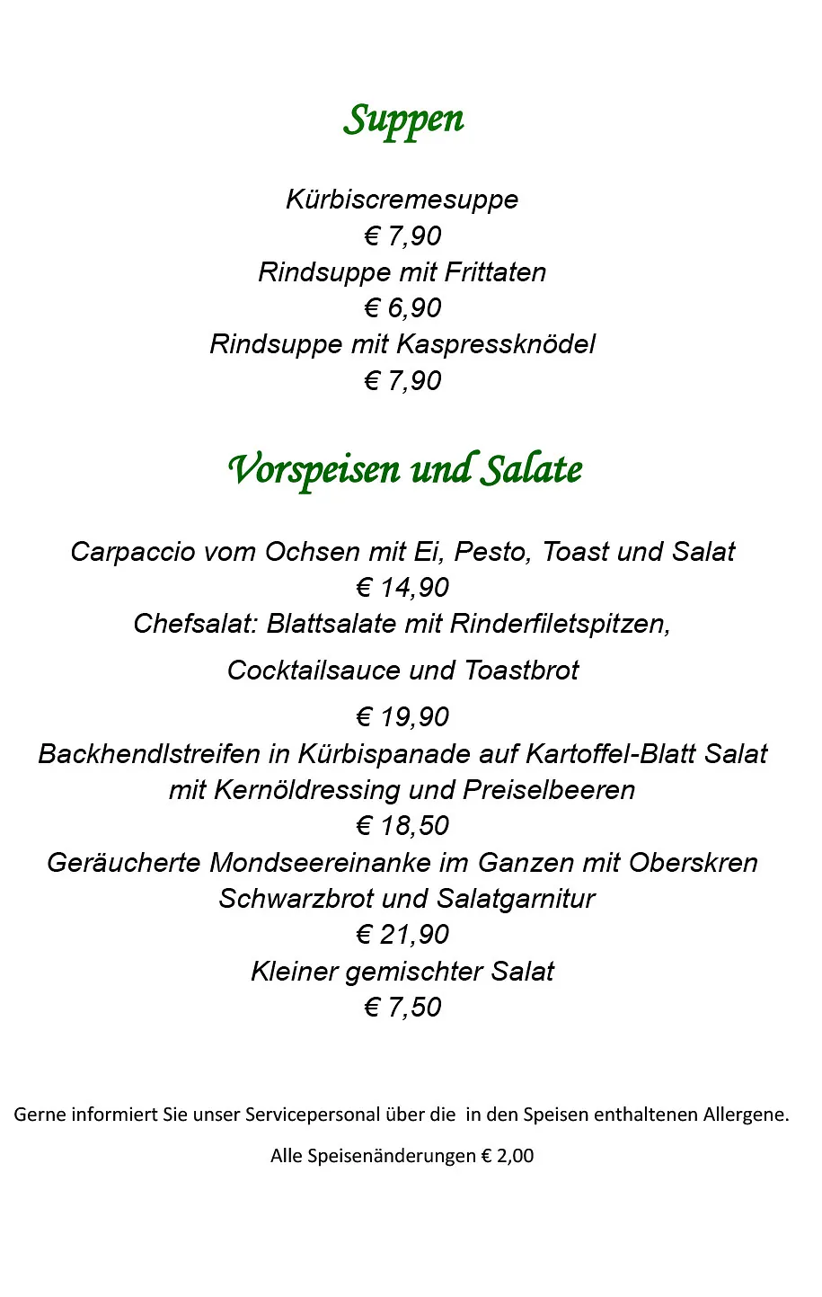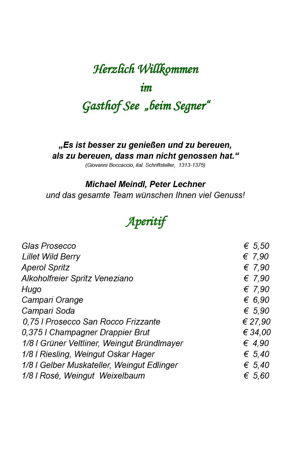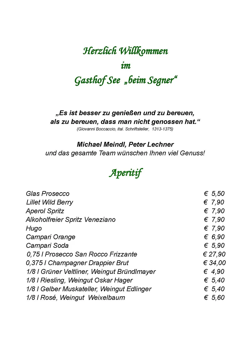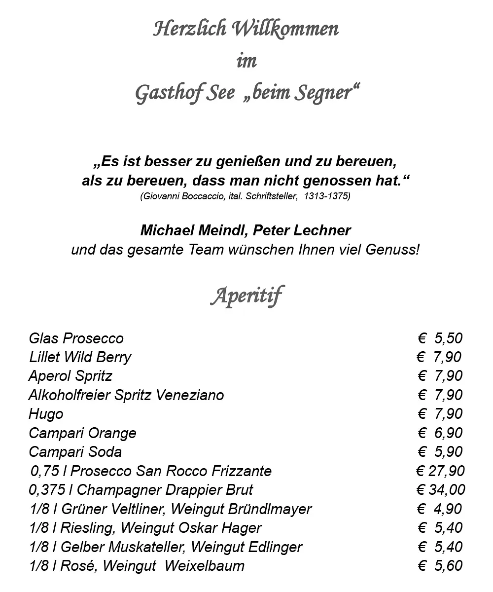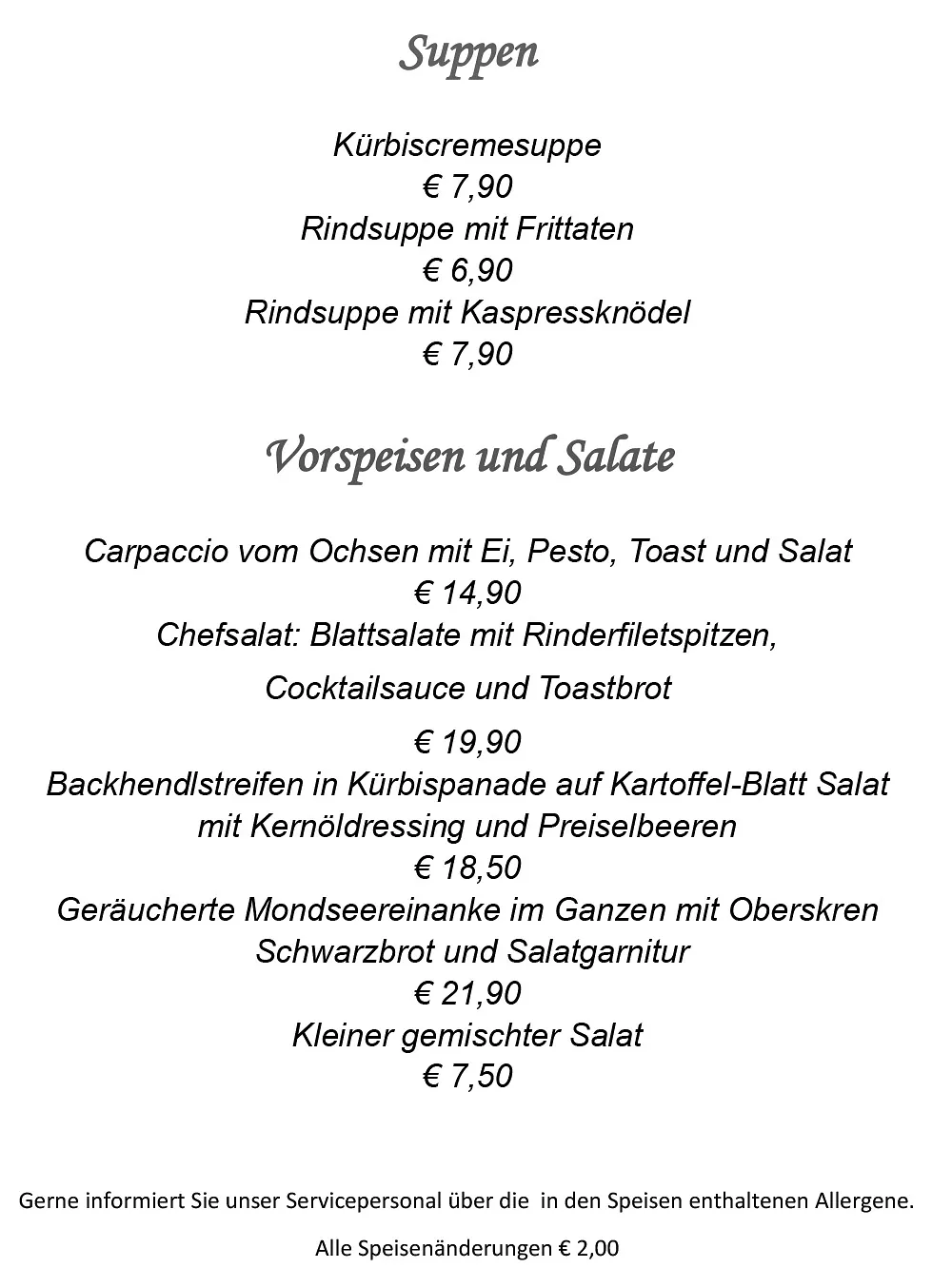 Unsere Speisekarte im Gasthof See am Attersee und Mondsee
