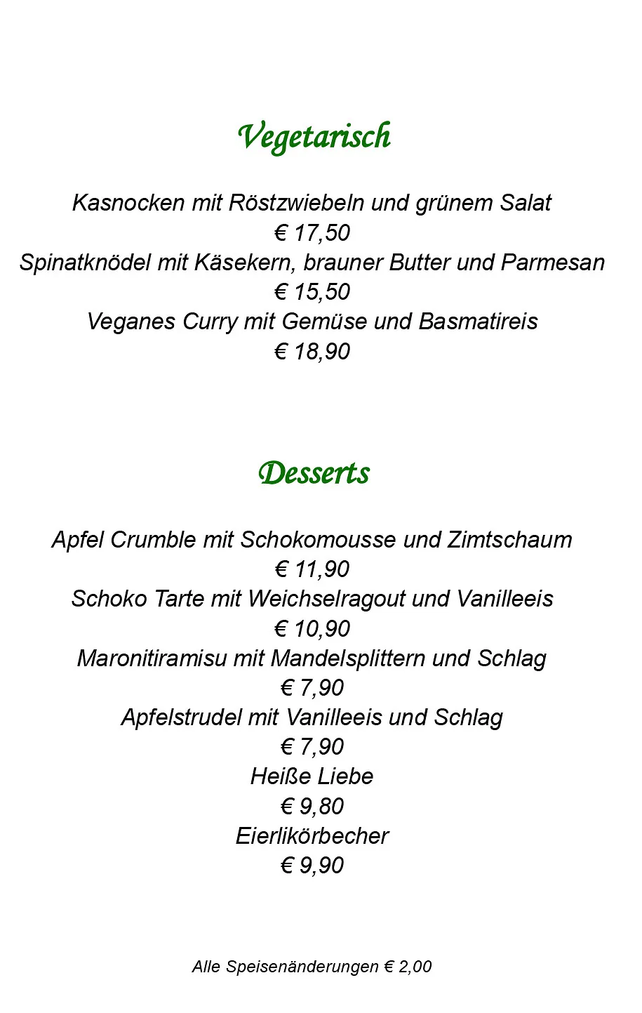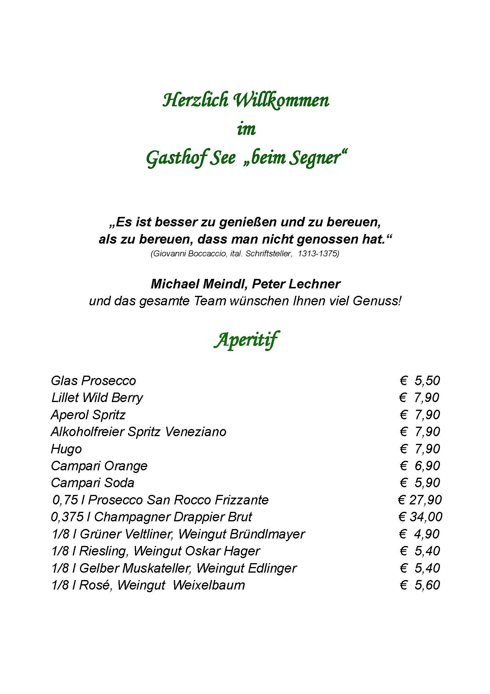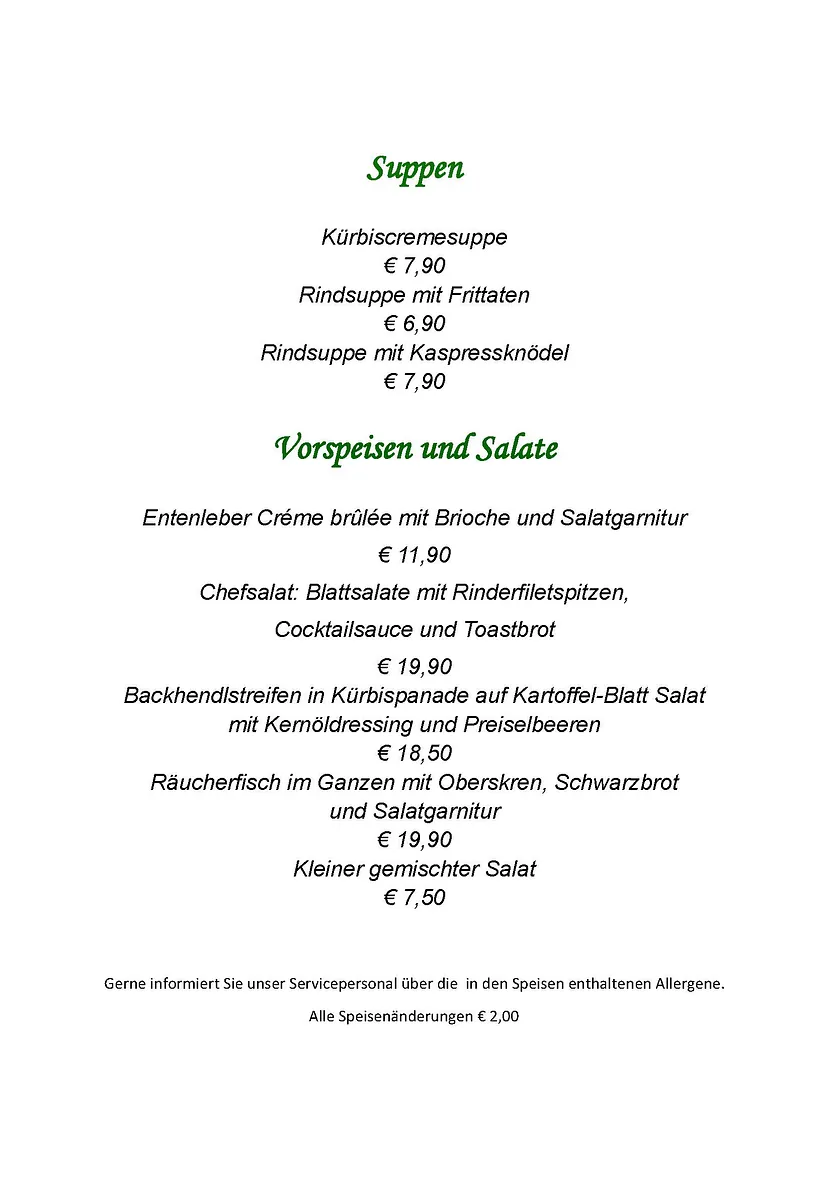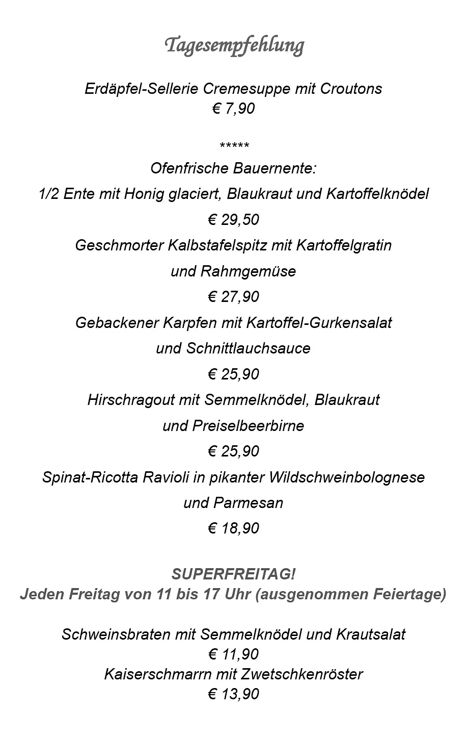 Unsere Speisekarte im Gasthof See am Attersee und Mondsee