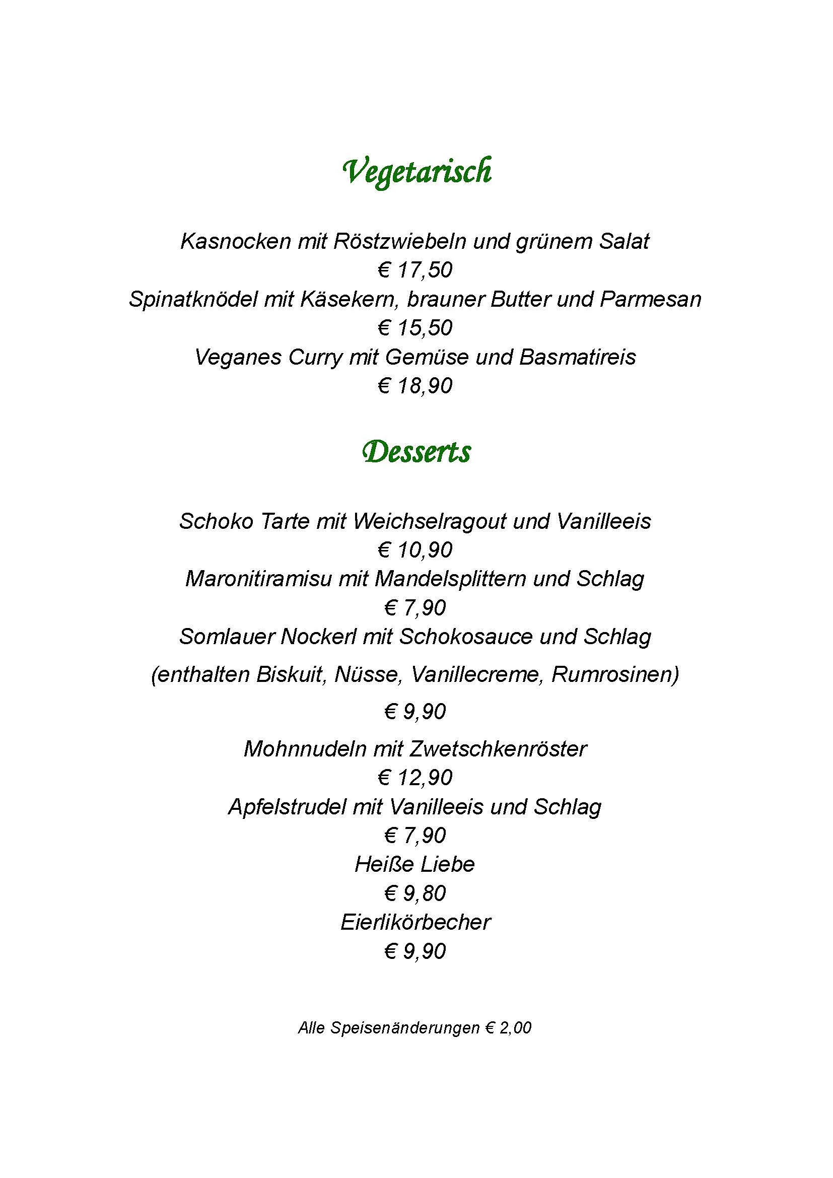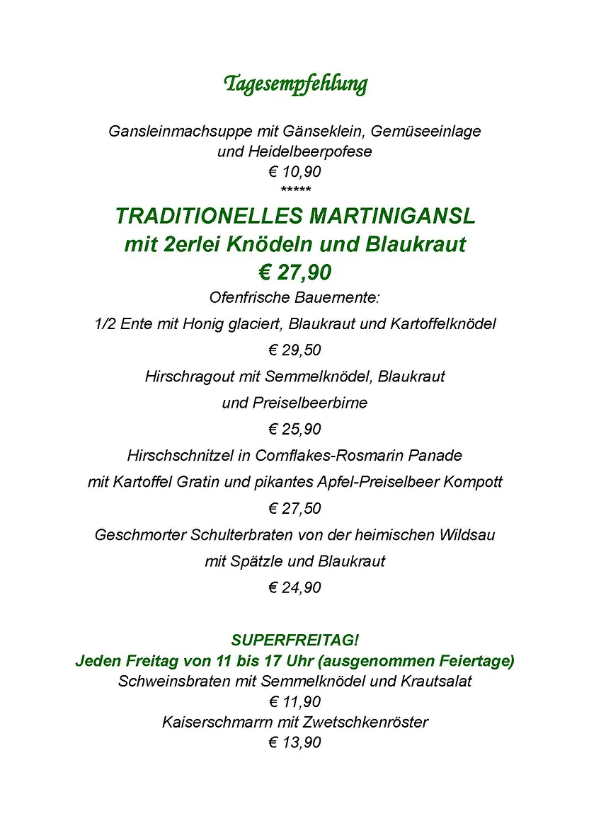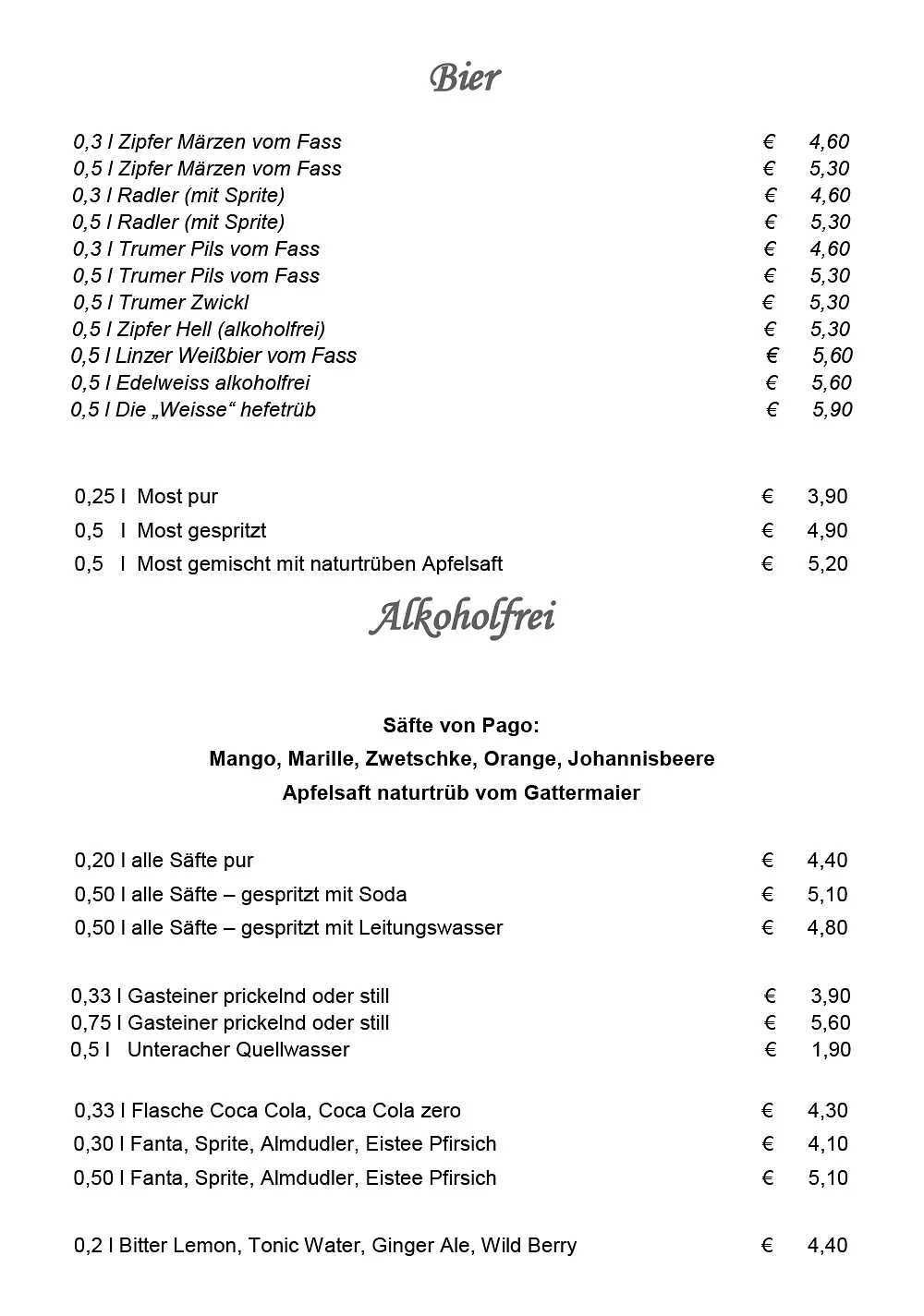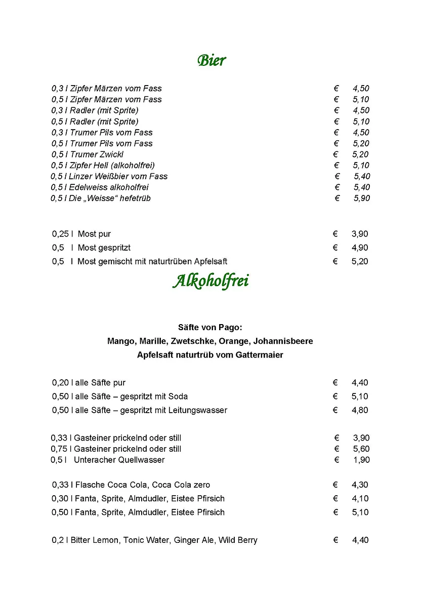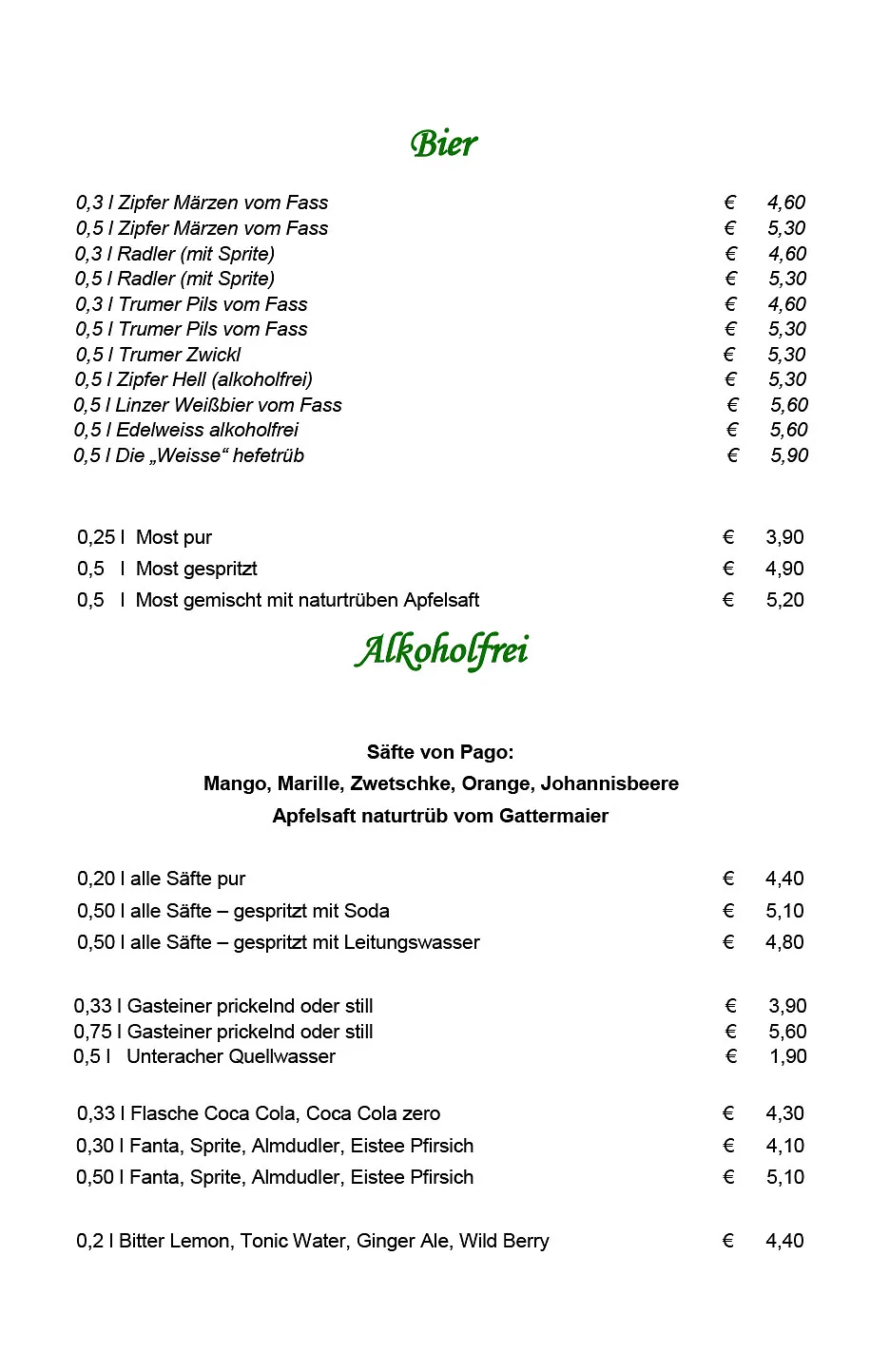 Unsere Speisekarte im Gasthof See am Attersee und Mondsee